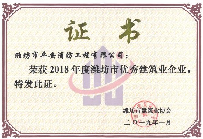 2018年度濰坊市優(yōu)秀建筑業(yè)企業(yè)